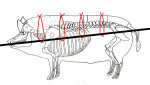 - Propíchneme drátem sele z venku z obou stran jedním kusem drátu. Z druhé strany, uvnitř selete vyleze drát, který spojíme svázáním, přičemž jím připevníme sele k tyči, která probíhá kolem páteře selete.