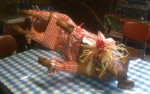 Ukázka z hostiny, jak krásně se dá obléci uzené sele. Sele tak bylo zdrojem pobavení.